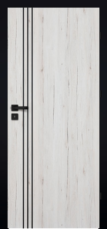 Model 1S, 2S, 3S – ramiak skrzydła wypełniony płytą wiórową. Przylga w kolorze czarnym. Możliwość wyboru ościeżnicy w kolorze skrzydła lub Nero (NE). Możliwość doboru czarnej klamki i osłonek na zawiasy.